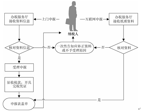 (5)办税服务厅人员在相应申报表上签名并加盖业务专用章,一份返还纳税人,一份作为资料归档,一份作为税收会计核算的原始凭证。