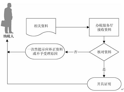 (1)办税服务厅接收资料,核对资料是否符合法定形式,符合的即时办结;不符合的当场一次性提示纳税人应补正资料或不予受理原因。