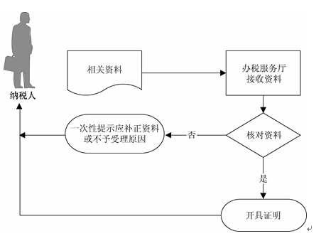 (1)办税服务厅接收资料,核对资料是否齐全、是否符合法定形式、填写内容是否完整,符合的即时办结;不符合的当场一次性提示应补正资料或不予受理原因。