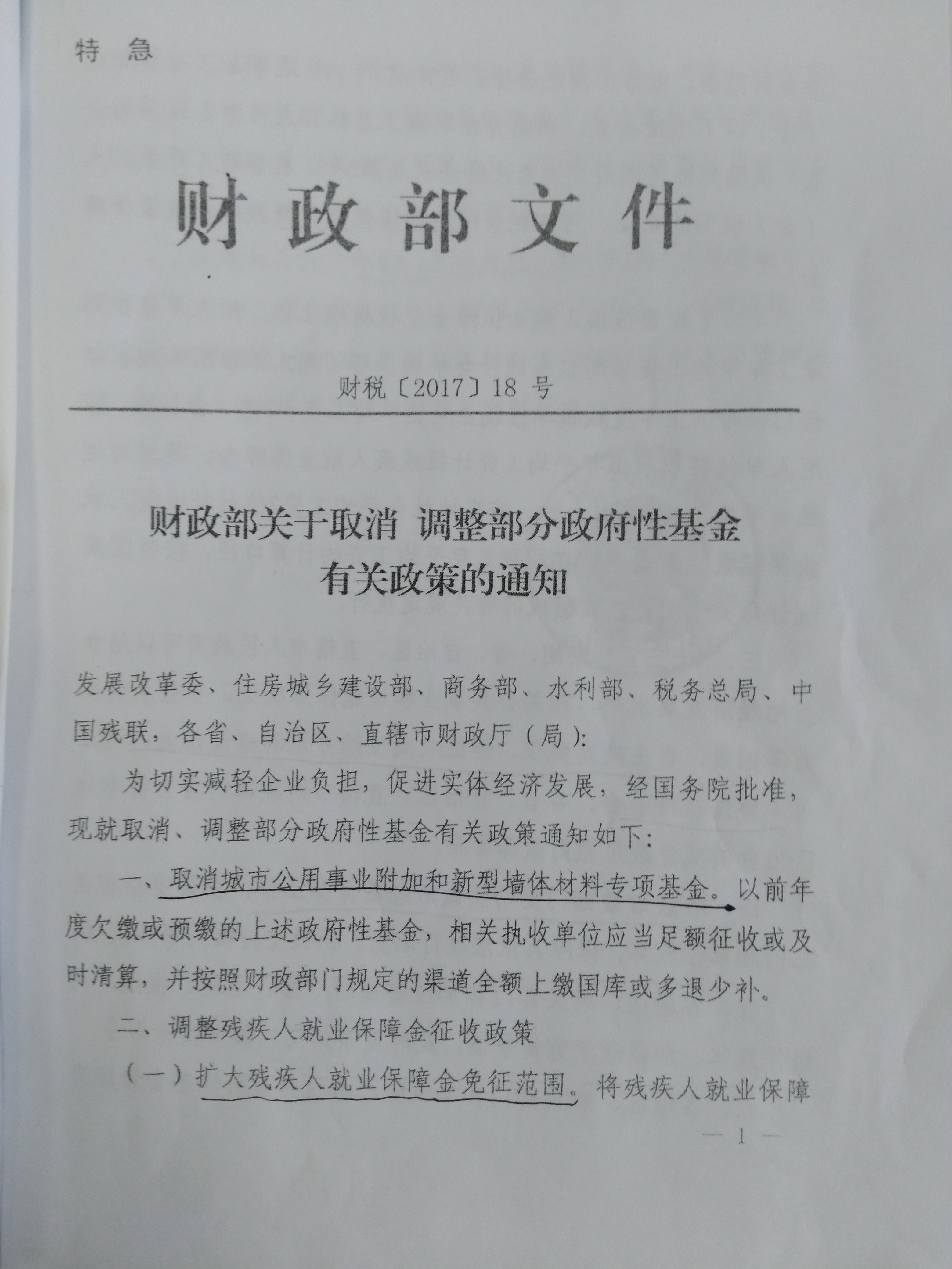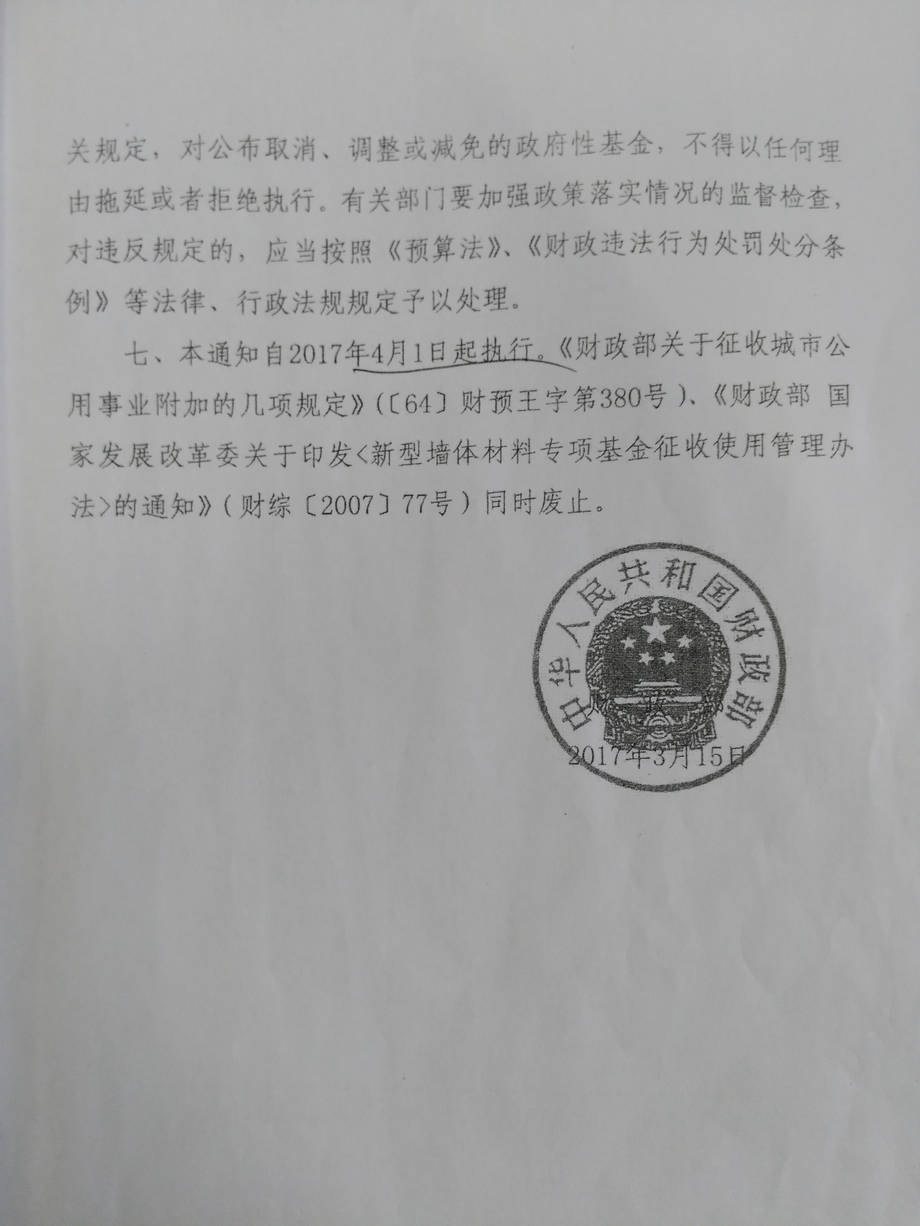 财政部关于取消 调整部分政府性基金有关政策的通知