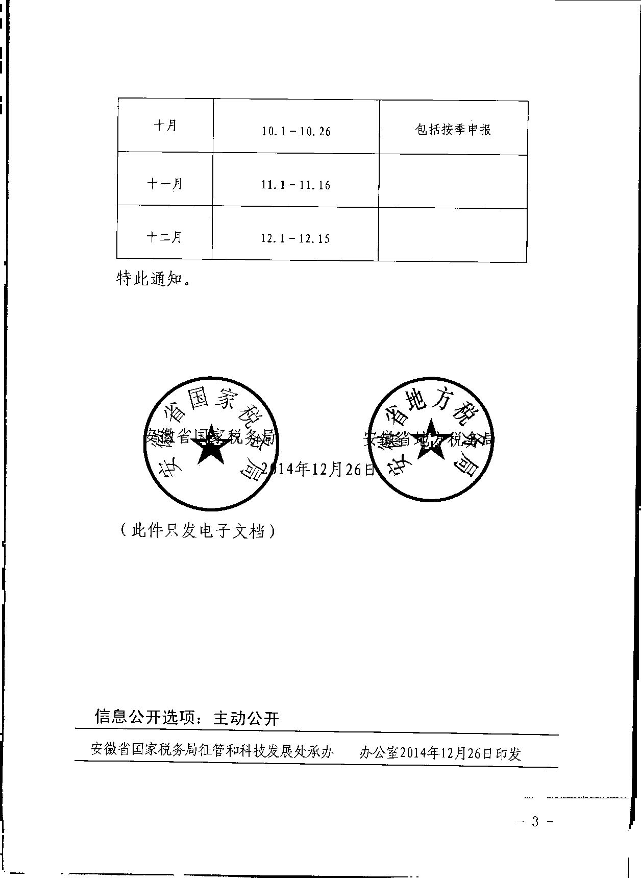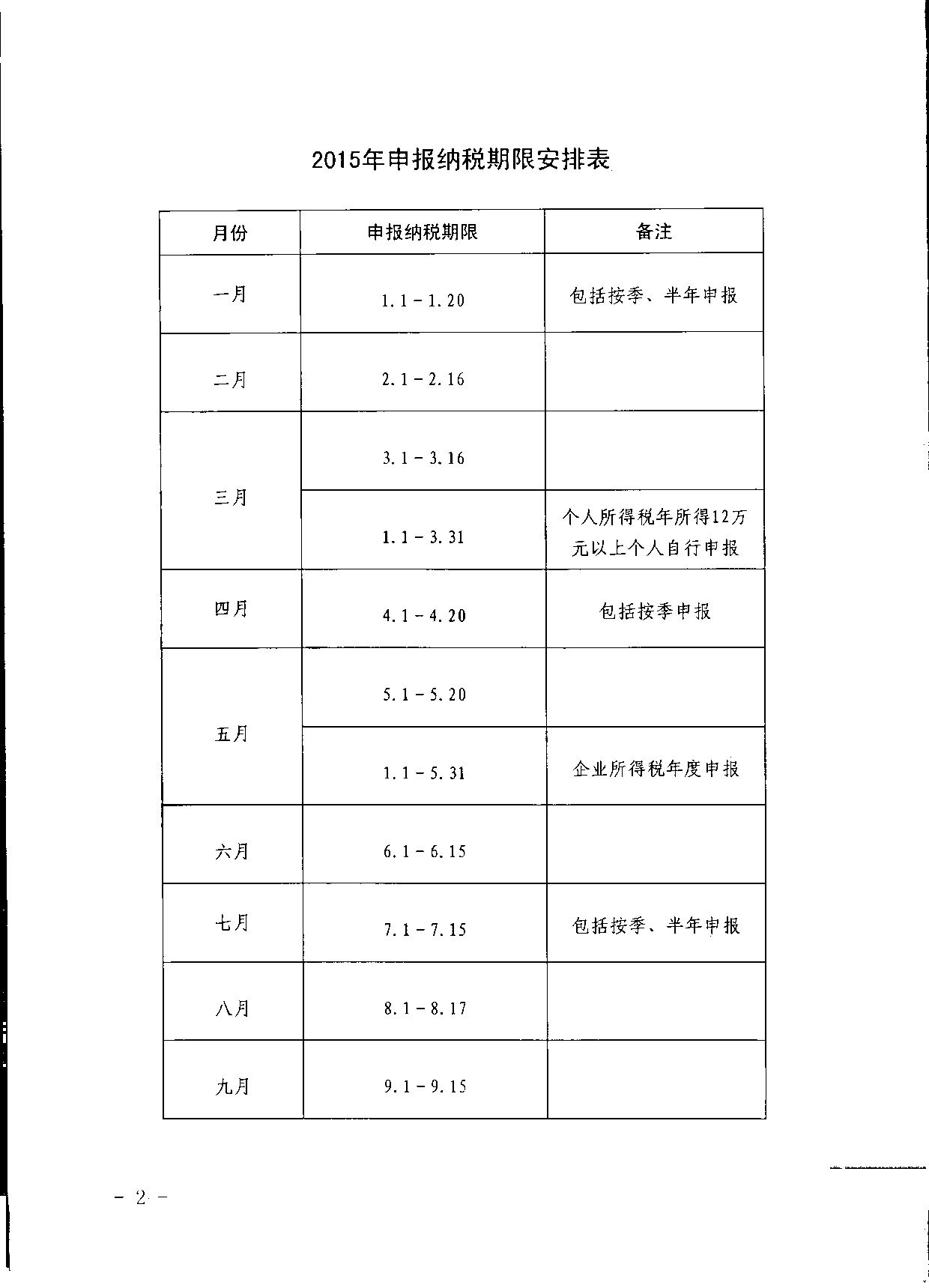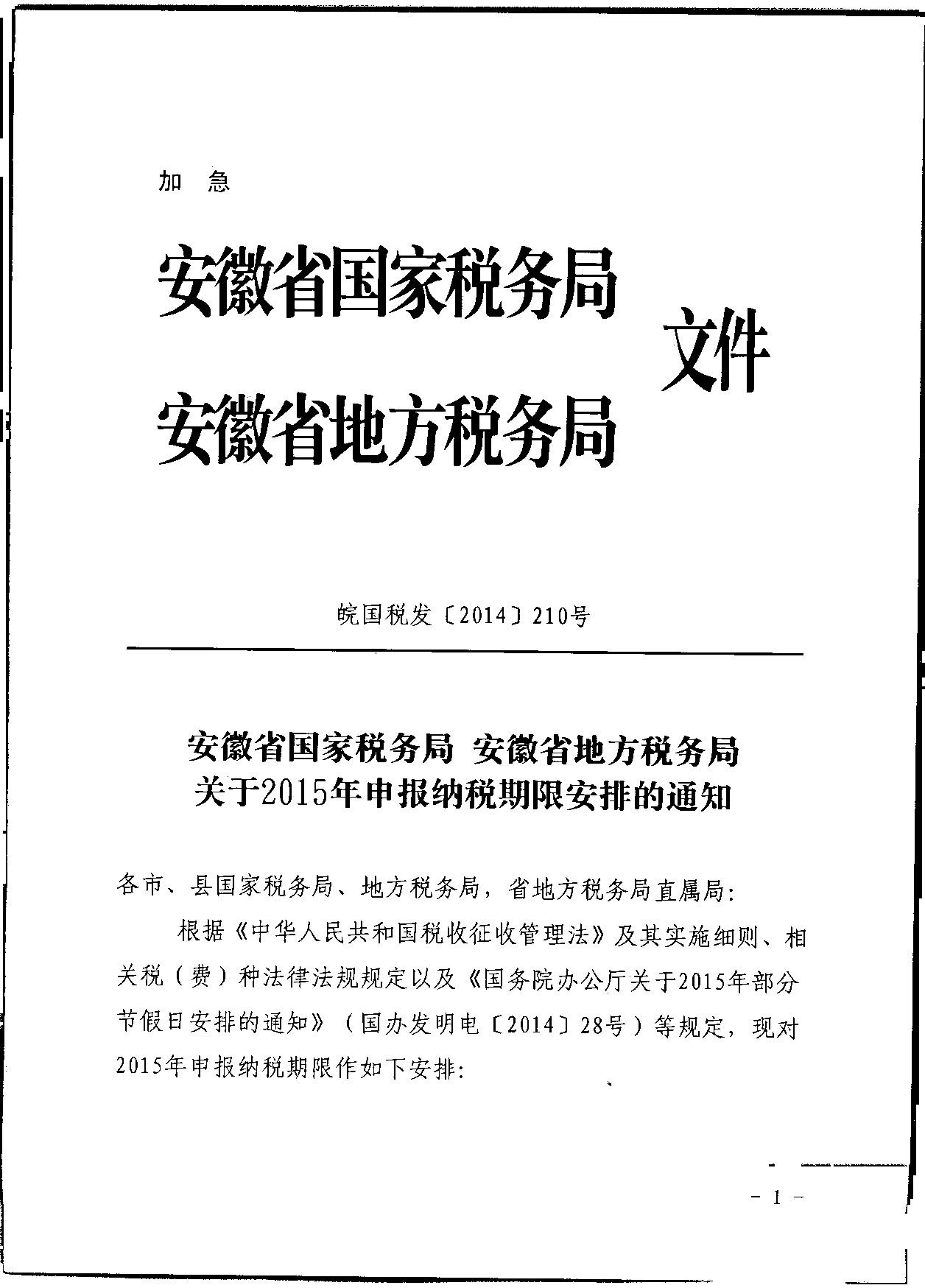 安徽省国家税务局 安徽省地方税务局关于2015年申报纳税期限安排的通知