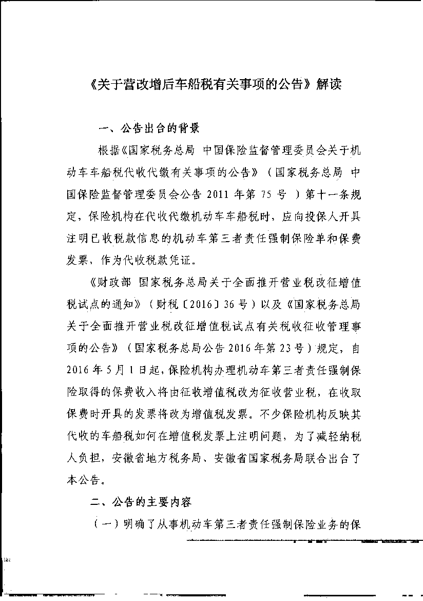 《关于营改增后车船税有关事项的公告》解读