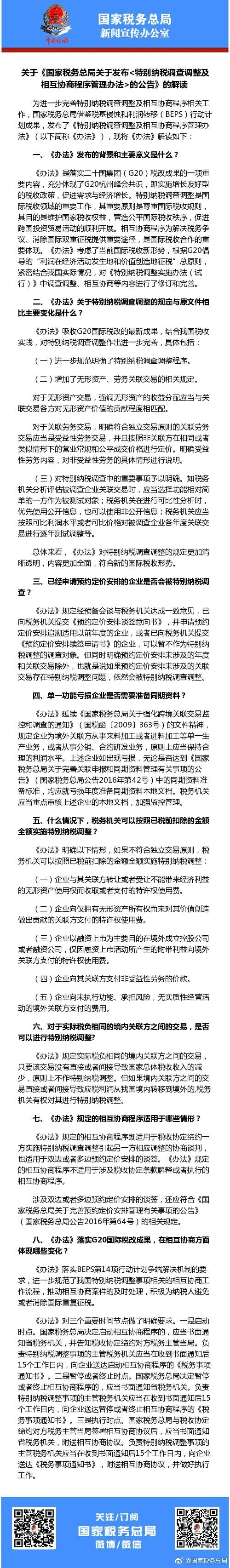 《特别纳税调查调整及相互协商程序管理办法的公告》的解读