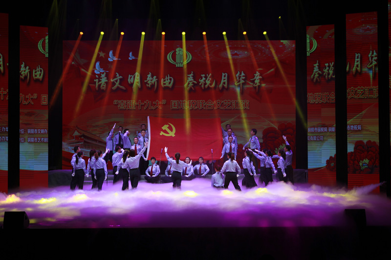 为迎接党的十九大胜利召开,不断加强我市税务系统精神文明建设, 全面深化国地税合作水平,10 月 14 日下午,由铜陵市文明办、铜陵市国税局、铜陵市地税局联合主办的“喜迎十九大”文艺汇演在五松山剧院举行。 铜陵市委常委、宣传部部长昌红梅及省国税局、省地税局等有关领导观看了演出。